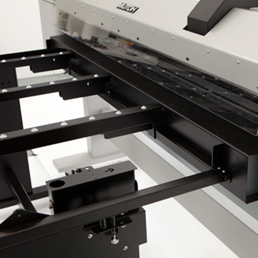 Der Drucker ist vorne und hinten mit Rollentischen ausgestattet und verarbeitet starre Materialien mit einer Stärke von bis zu 15 mm und einem Maximalgewicht von 15 kg. Die Materialstärke wird elektronisch gemessen und die Druckkopfhöhe automatisch angepasst. Zum motorisierten Aufwickeln von Rollenmaterial kann der ValueJet 1617H mit einer Spann-/Wickelvorrichtung 30 ausgestattet werden, sodass Materialrollen bis 30 kg verarbeitet werden können. Die Umstellung der Betriebsart von starren Materialien zu Rollmaterial und umgekehrt dauert nur eine Minute.