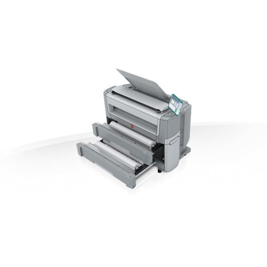 Die Océ PlotWave 500 ist ein multifunktionaler S/W-Drucker mit optionalem Farbscanner. Sie steht für Sofortdruck, sichere Cloudanbindung, niedrigen Stromverbrauch und ein durchdachtes Multi-Touch-Bedienfeld – und das alles in kompakter Form.