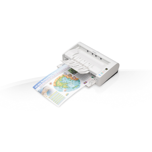 Der DR-M1060 ist extrem leistungsfähig. Er scannt beidseitig 120 Bilder pro Minute (DIN A4) und verfügt über einen 60-Blatt-Dokumenteneinzug. Trotz seiner geringen Abmessungen bewältigt er ein Arbeitspensum von bis zu 7.500 Dokumenten pro Tag.